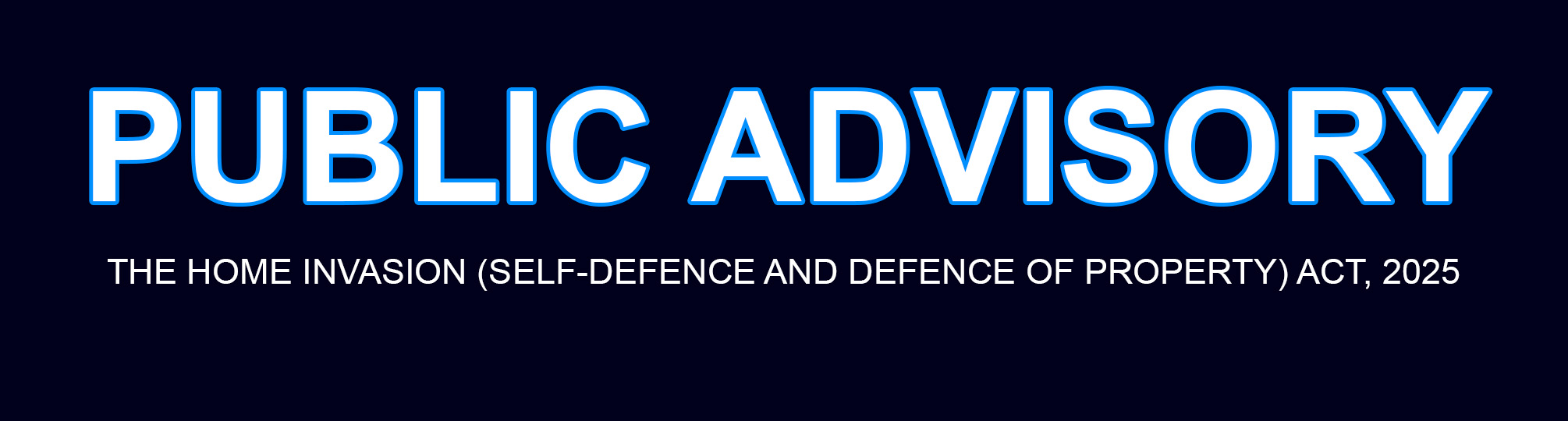 Office of The Attorney General and Ministry of Legal Affairs > > Home > News > Register General > Public Advisories > HOME INVASION (SELF-DEFENCE AND DEFENCE OF PROPERTY) ACT, 2025